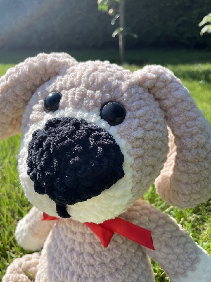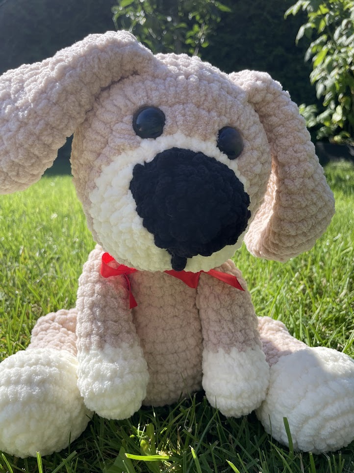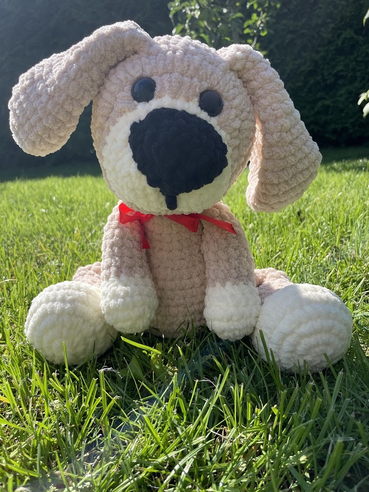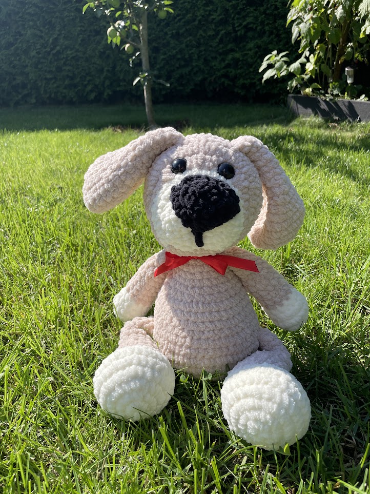 Amigurumi koer Bruno – suur, pehme ja turvaline kaisukoer, kes toob lapse päeva rõõmu ja rahu